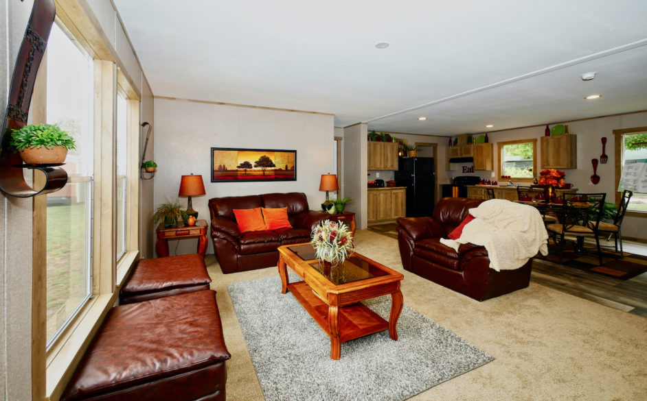 There are also many other additional options that you can add like upflow air vents in the ceiling, a gas furnace, a gas range, a dishwasher, and 42″ ceiling fans with lights, and 2″ vinyl blinds.