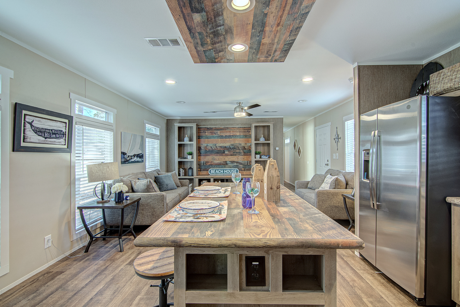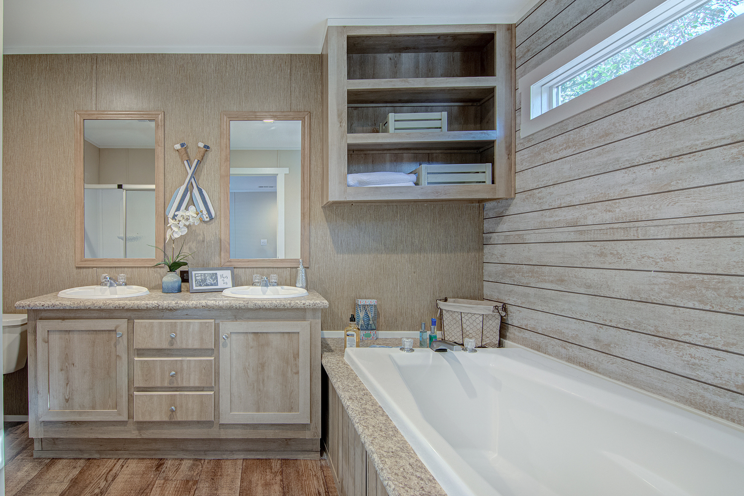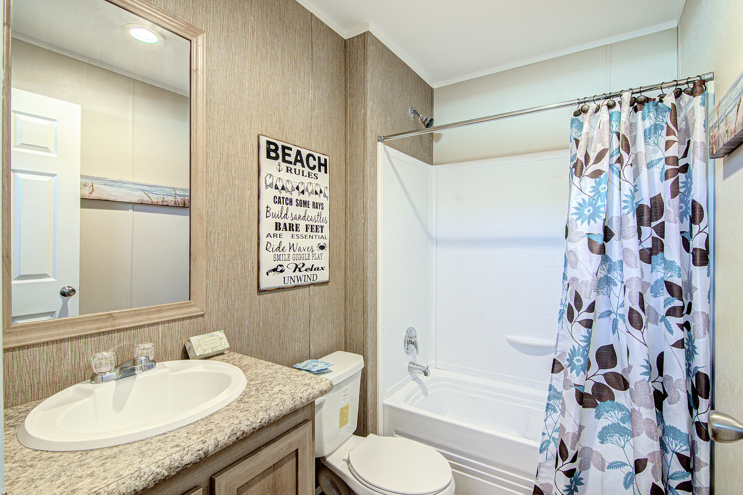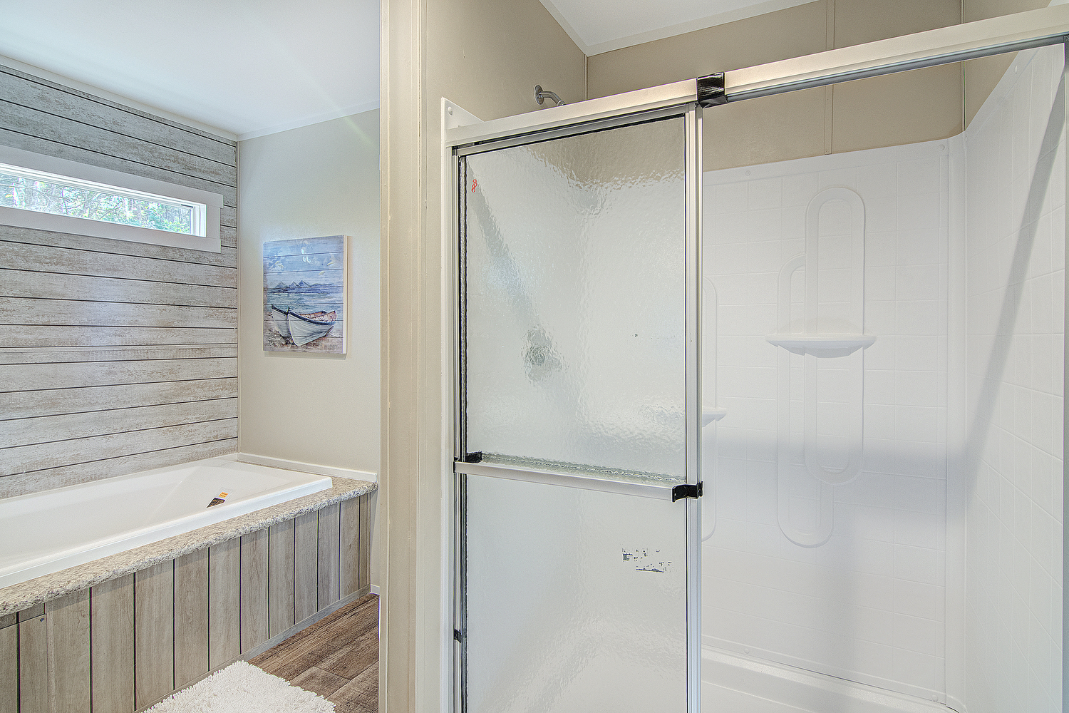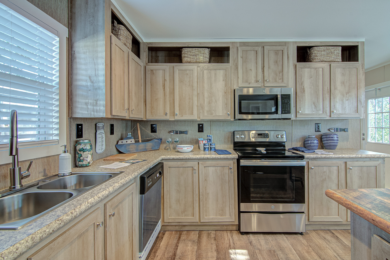 We have new pictures to share of our newest model in our Top-Selling Home Line! The Silver Spur 358 is a 3 bedroom, 2 bath, 1178 square foot single wide manufactured home. This new Silver Spur model has solarium windows which flood the open concept living space with lots of light.  There’s also a newly redesigned kitchen with island and a huge utility room with freezer space! It also comes with GE Stainless Steel Appliances. The primary bedroom is situated privately from the other two secondary bedrooms. Rest assured, the Silver Spur 358 still has the same great features as the original Silver Spur. There are lots of cabinets, LED lighting, a built-in entertainment center with storage cubbies, and a huge soaking tub.