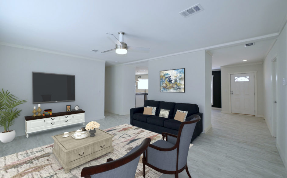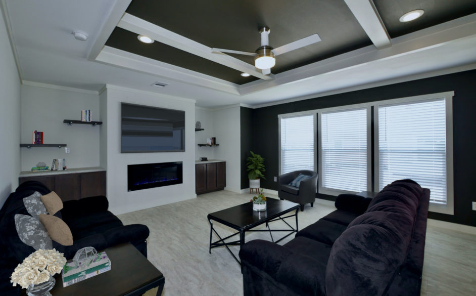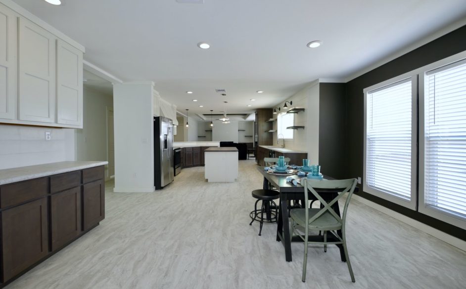 The Southern Comfort 6371 is perfect for those families who LOVE to enjoy the COMFORTS of home! This home can be built as a manufactured or modular home. This 3 bedroom, 2 bath, 2168 square foot home is not only spacious, but has high-end standard features sure to please every member of the household. The Southern Comfort is modern, sleek, and trendy in design. It features window bump-outs for added extra space. One in the living room. The other in the dining area.